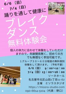 6月、7月ダンス体験会のお知らせ(そーねホール)